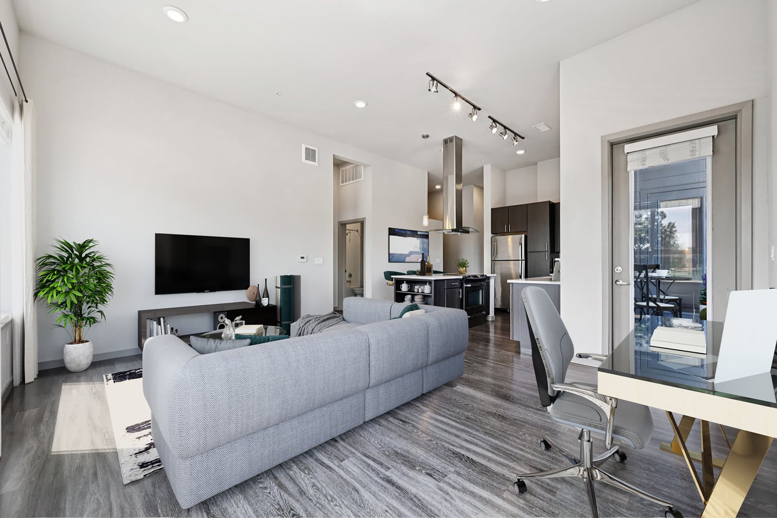 - Modern, chic floor plans featuring chef-inspired kitchens, luxury plank flooring, and designer light fixtures.