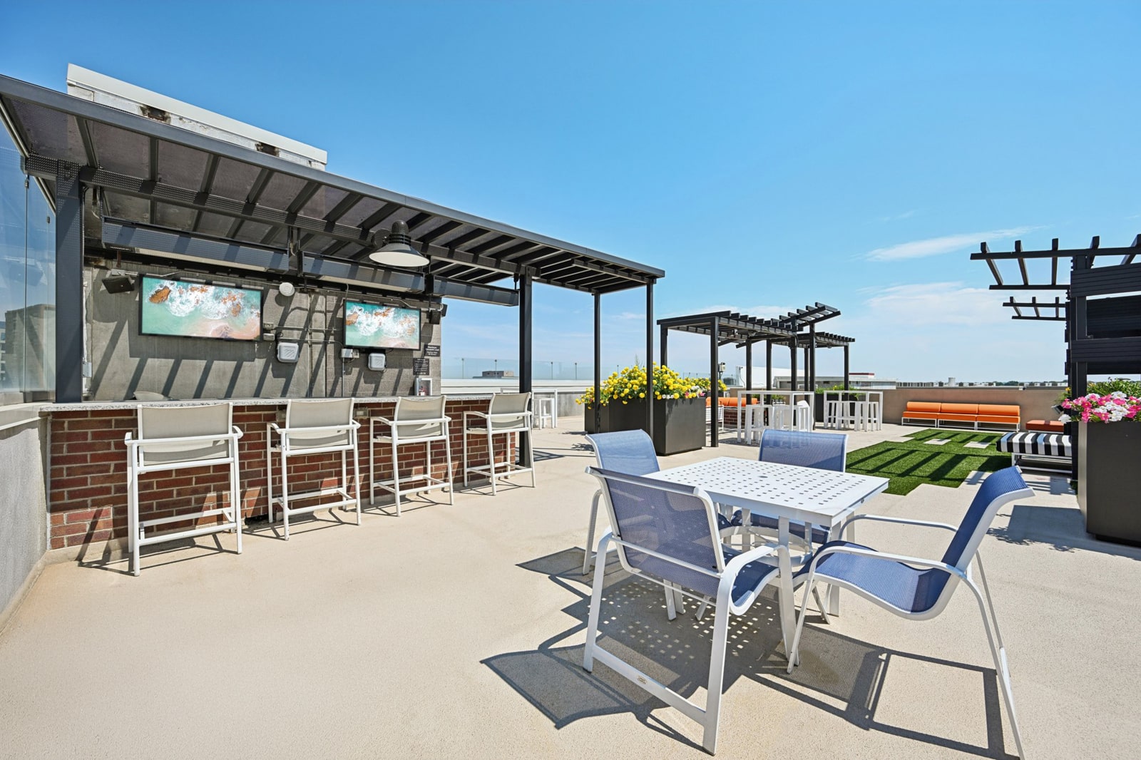 - Wide array of club-quality amenities including a resort-style swimming pool and spa, state-of-the-art fitness center, and rooftop lounge with panoramic views of the Rocky Mountains.